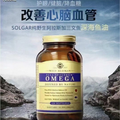 新包装Solgar Advanced Omega D3阿拉斯加三文鱼油软胶囊120粒,富含红鲑三文鱼油、维生素D3和虾青素,Solgar 软胶囊所含 EPA、DHA等脂肪酸的含量,以及彼此的相对比例,与野生三文鱼保持一致。Solgar 全谱软胶囊也是维生素D3的好来源,后者是一种必需维生素,具有多重健康功效,包括骨骼、免疫、乳腺、心血管、结肠和胰腺健康。此外,该特殊配方提供强大的天然抗氧化剂虾青素 - 一种脂溶性类胡萝卜素色素,让三文鱼具有其独特鲜艳色泽。每日3粒,温水服用。