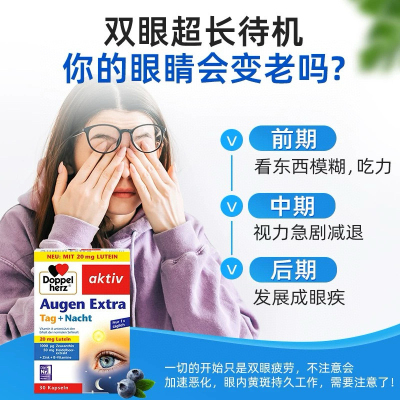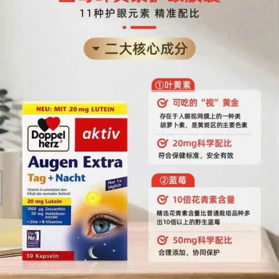 德国Doppelherz Augen Vital双心叶黄素护眼胶囊30粒加强版。一天一粒