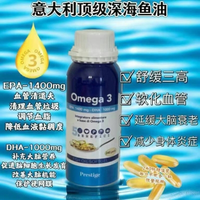 意大利著名品牌prestige 深海鱼油 ,保持心血管健康,软化血管,降血压,血脂,血糖,有助明目,维护大脑,神经功能。